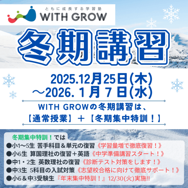 2025WITH GROW冬期講習!12/25(木)~1/7(水)【冬期講習時間割掲載】 お知らせ